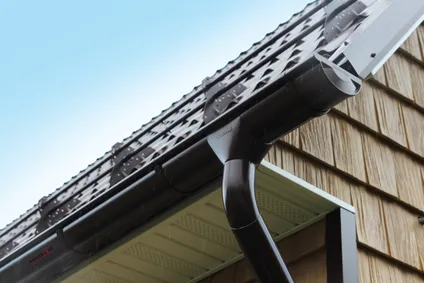 Большая водопропускная способность водостока позволяет собирать осадки с большей поверхности кровли, что приводит к экономии на количестве водосточных труб и сопутствующих элементах.Для крепления крюков водосточной системы, рекомендуем использовать "желтые" саморезы PZ (5.0*40мм).